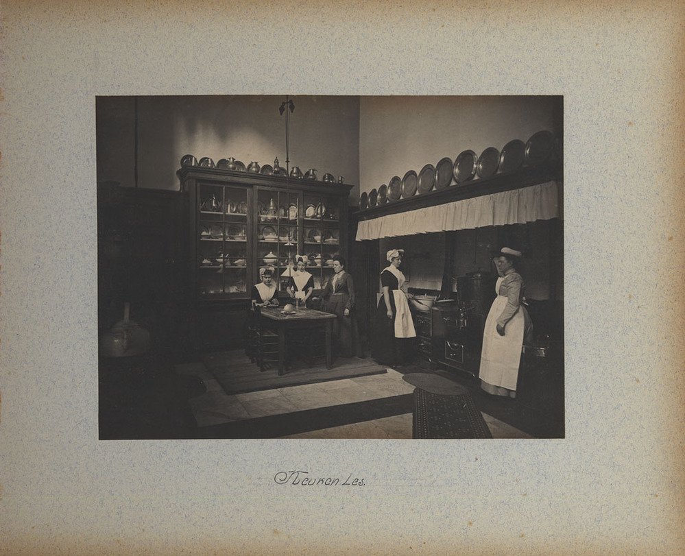 In het Amsterdamse Burgerweeshuis konden kinderen van Amsterdamse poorters (burgers met rechten om in de stad te wonen) terecht, die geen ouders of een moeilijke thuissituatie hadden. Het weeshuis was eeuwenlang een gesloten instelling, waar buitenstaanders niet zomaar naar binnen mochten. Voor de creatie van een fotoalbum, ter ere van het 25-jarige huwelijk van bouwkundige Pieter Heyn in 1904, werd een uitzondering gemaakt. Fotograaf August Stap maakte een unieke serie foto’s van het interieur, de wezen en het personeel van het Burgerweeshuis. Op de foto’s zijn de Burgerwezen tijdens hun dagelijkse bezigheden te zien. Zo komen onder meer de naailes voor meisjes, het ‘Slöjd’-onderwijs voor jongens en de zondagse gang op weg naar de kerk voorbij. Een groot aantal van de foto’s zijn later gebruikt voor de productie van een serie ansichtkaarten in kleur. ( Sarah Remmerts de Vries)