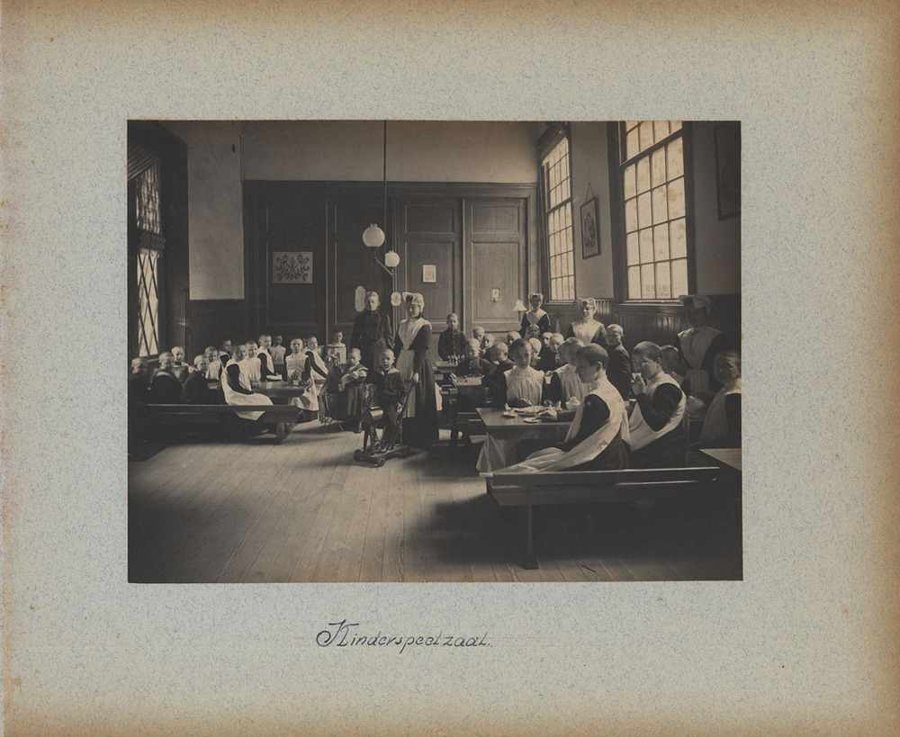 In het Amsterdamse Burgerweeshuis konden kinderen van Amsterdamse poorters (burgers met rechten om in de stad te wonen) terecht, die geen ouders of een moeilijke thuissituatie hadden. Het weeshuis was eeuwenlang een gesloten instelling, waar buitenstaanders niet zomaar naar binnen mochten. Voor de creatie van een fotoalbum, ter ere van het 25-jarige huwelijk van bouwkundige Pieter Heyn in 1904, werd een uitzondering gemaakt. Fotograaf August Stap maakte een unieke serie foto’s van het interieur, de wezen en het personeel van het Burgerweeshuis. Op de foto’s zijn de Burgerwezen tijdens hun dagelijkse bezigheden te zien. Zo komen onder meer de naailes voor meisjes, het ‘Slöjd’-onderwijs voor jongens en de zondagse gang op weg naar de kerk voorbij. Een groot aantal van de foto’s zijn later gebruikt voor de productie van een serie ansichtkaarten in kleur. ( Sarah Remmerts de Vries)
