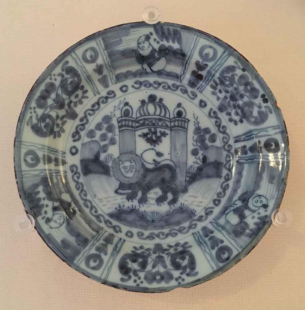 rand: bloemen en zittende figuren; midden: leeuw voor een poort- Trefwoorden