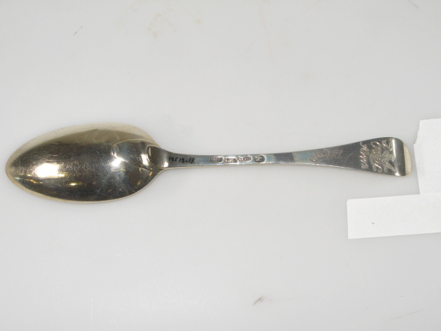 Tafellepel. Steel met middenribbe en omhoog gebogen ronde kop, aan de achterzijde dubbel Amsterdams lof; ovale lepelbak, overwegend puntig. Op onderzijde steel is een monogram gegraveerd met initialen: D.I.A./ O.V.H./, de afkorting van Diaconie Oude Vrouwenhuis, alsmede een naam van diaken of diaconesse en het jaar van aantreden in die functie.