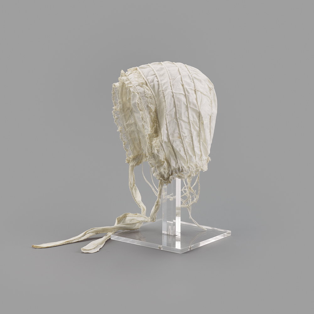 Muts voor in de wieg. Geen doopondermuts, deze zijn van satijn.