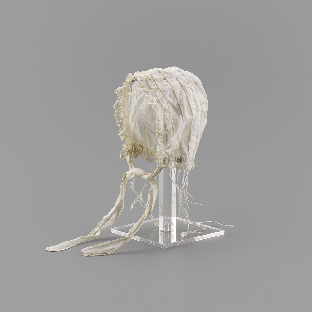 Muts voor in de wieg. Geen doopondermuts, deze zijn van satijn.