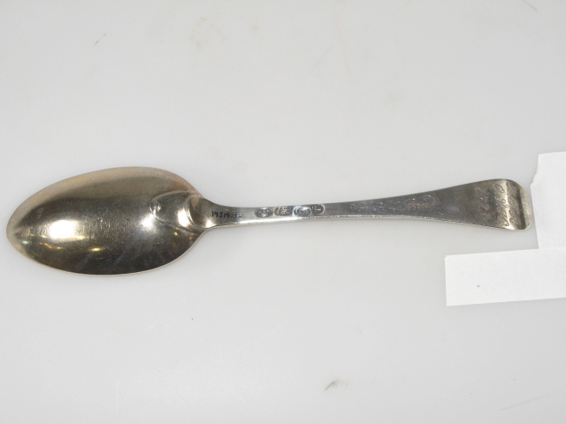 Tafellepel. Steel met middenribbe en omhoog gebogen ronde kop, aan de achterzijde dubbel Amsterdams lof; ovale lepelbak, overwegend puntig. Op onderzijde steel is een monogram gegraveerd met initialen: D.I.A./ O.V.H./, de afkorting van Diaconie Oude Vrouwenhuis, alsmede een naam van diaken of diaconesse en het jaar van aantreden in die functie.