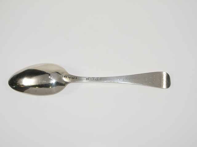 Tafellepel uit de negentiende eeuw, steel met middenribbe en omhoog gebogen ronde kop, aan de achterzijde dubbel Amsterdams lof, ovale lepelbak. Op onderzijde steel is een monogram gegraveerd met de initialen: D.I.A./ O.V.H./, de afkorting van Diaconie Oude Vrouwenhuis, alsmede de namen van de diakenen en diaconessen en het jaar van hun aantreden in die functie.