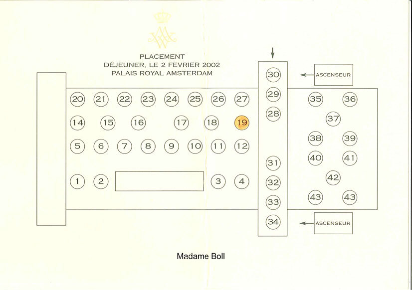 - Placement voor lunch in het Koninklijk Paleis t.g.v. huwelijk van Prins Willem-Alexander en Máxima Zorreguieta op 2002-02-02, 2002