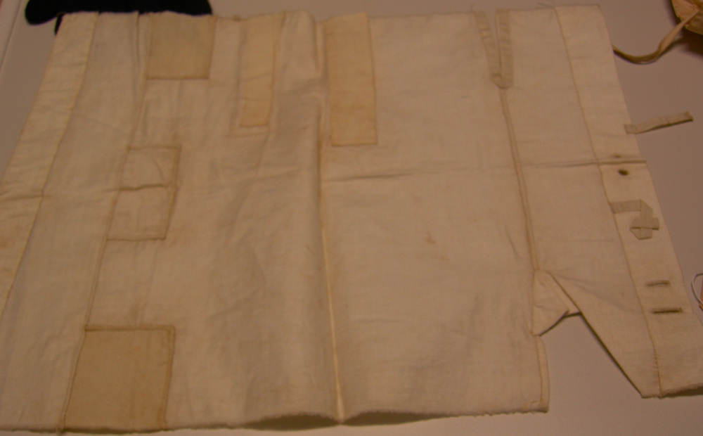 Lap van naturelkleurig katoen met verschillende soorten naden.- Trefwoorden