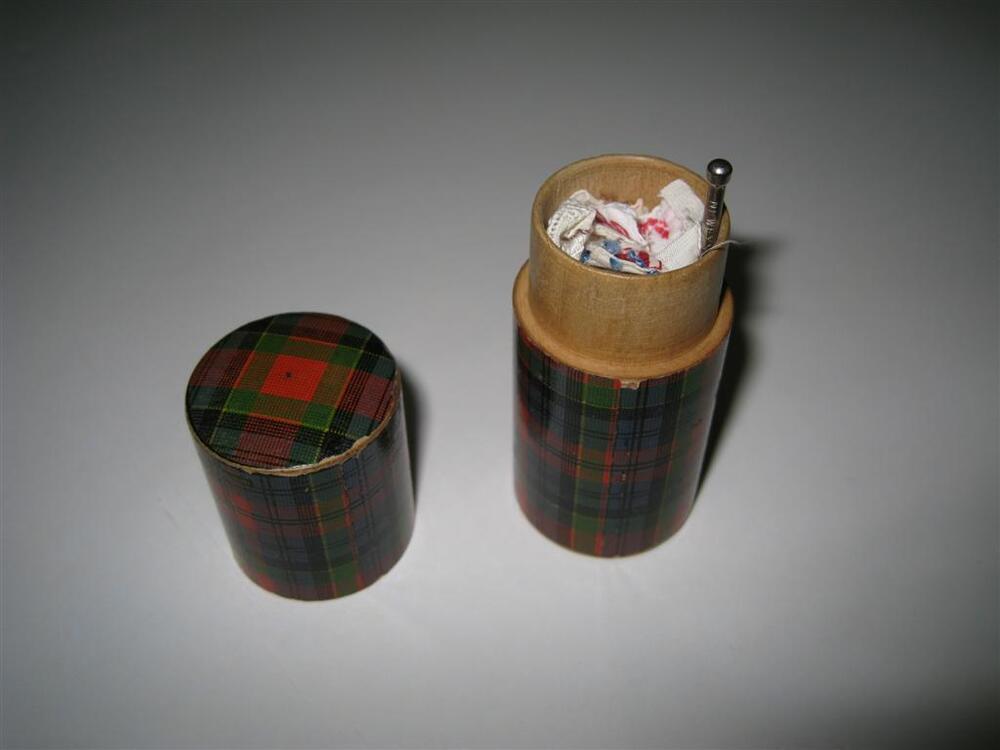 - Tartan-ware, zes stuks (kokerdoosje met etiketjes 'McPherson'), 1880 - 1899