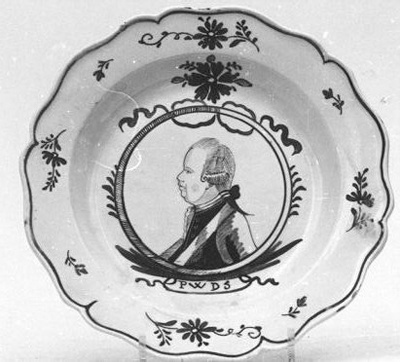 - TentoonstellingstekstOp borden het portret van Willem V en de teksten ‘nu siet men weer verschijne’ en ‘de oranje son aan roer van staat’.