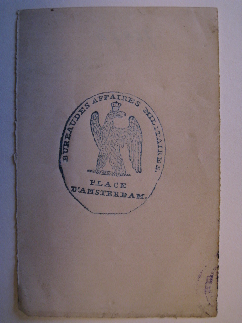 - opschrift zegel: BUREAU DES AFFAIRES MILITAIRES PLACE D'AMSTERDAM