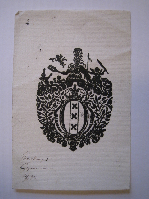 opschrift voorzijde drager: Persstempel Gymnasium 21/„92 - onbekende verwerving