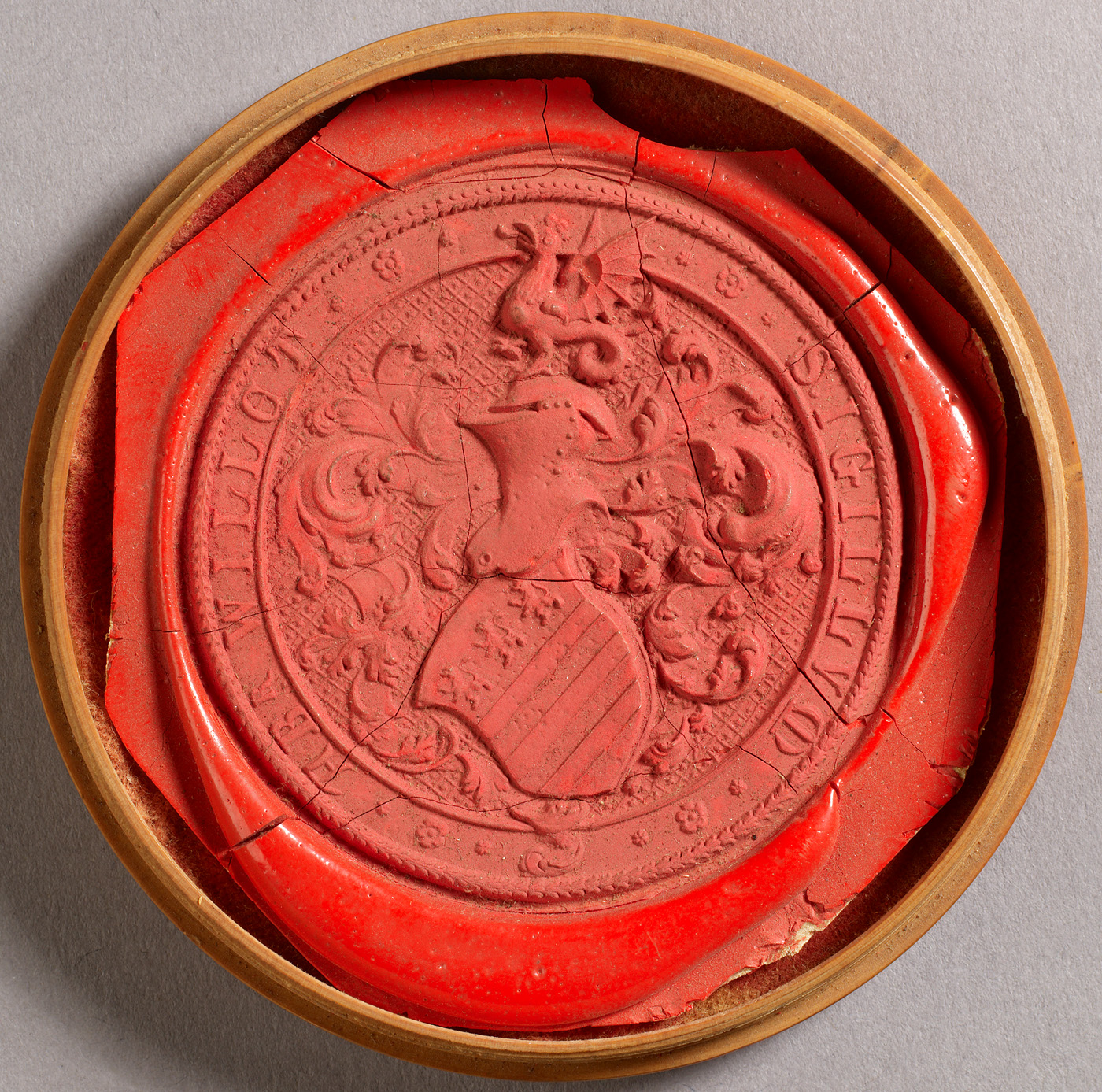 - Lakzegel wapen Abraham Willet in houten bakje, 1880 - 1899