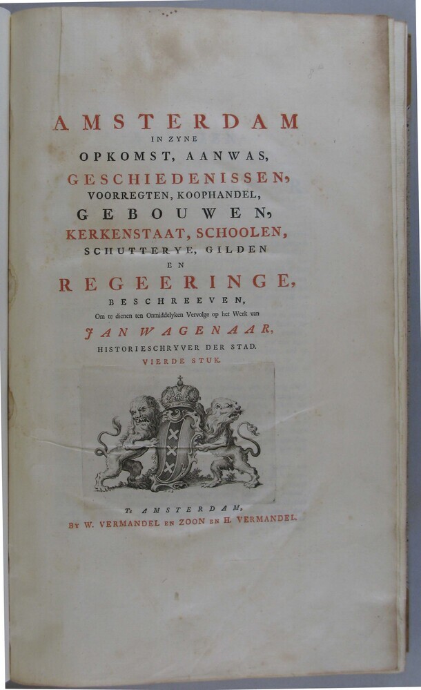 - Amsterdam in zyne opkomst, aanwas, geschiedenissen [...] : vierde stuk ; om te dienen ten onmiddelyken vervolge op het werk van Jan Wagenaar, Amsterdam, W. Vermandel en Zoon en H. Vermandel, s.a. [na juli 1794], 1794 - 1804
