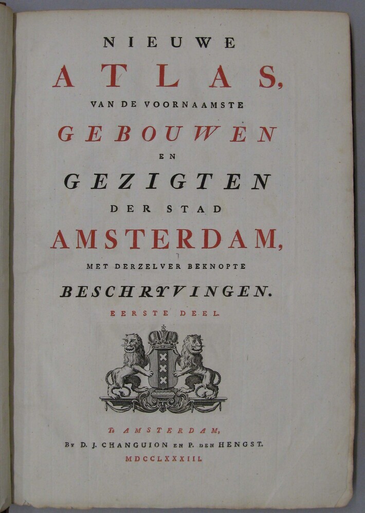 - Nieuwe atlas, van de voornaamste gebouwen en gezigten der stad Amsterdam, Amsterdam 1783. Deel 1., 1783