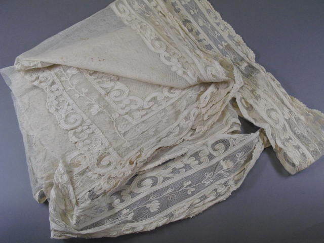 Vitrage van katoen tule met tamboereerwerk en applicatie langs de linker en rechter zijkant en de onderrand.- Trefwoorden