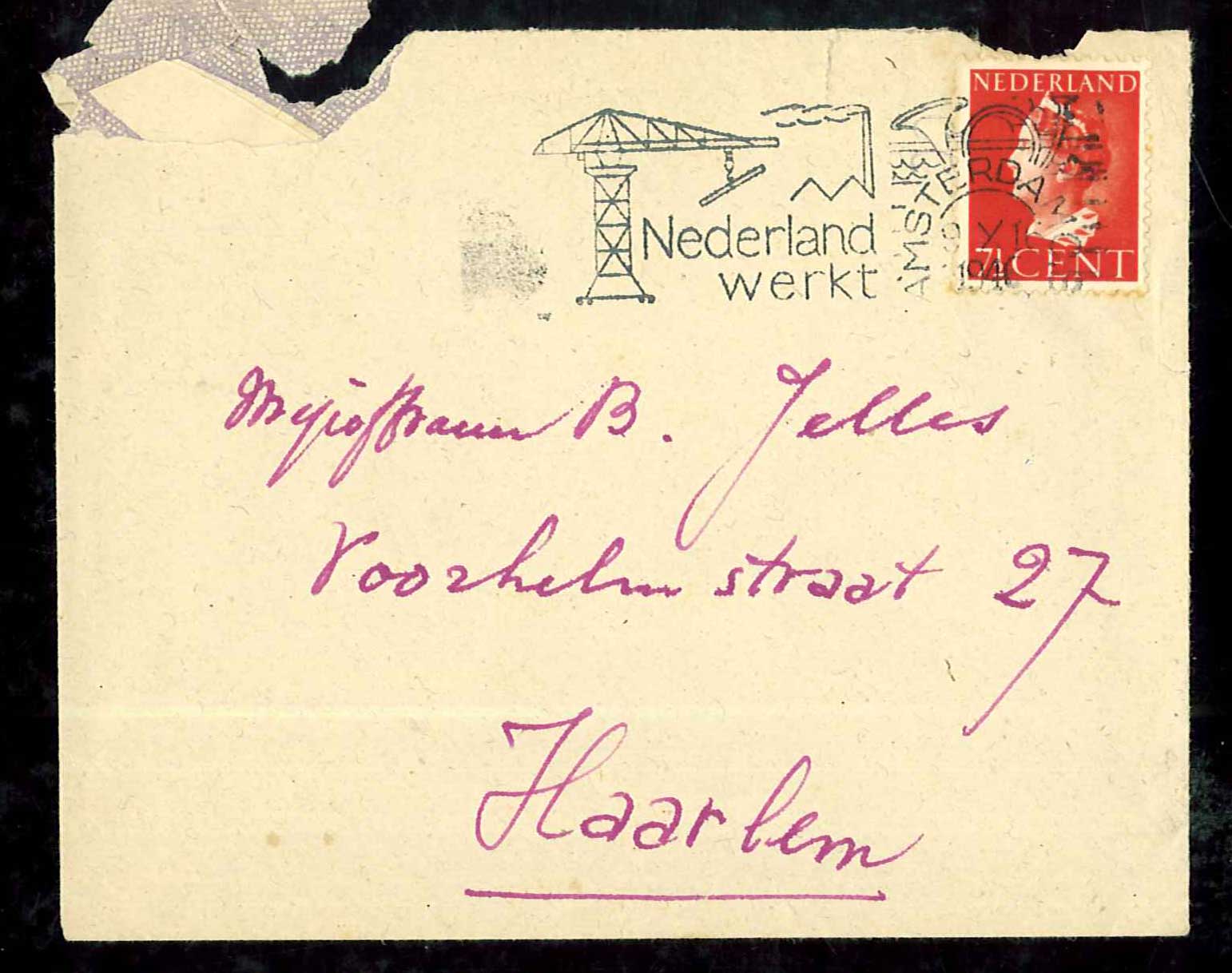 - Envelop voor brief aan Baukje Jelles, 1946