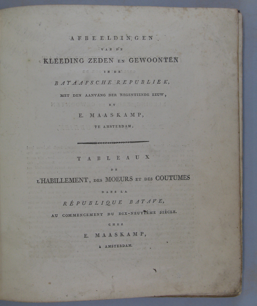 - Afbeeldingen van de kleeding zeden en gewoonten in de Bataafsche Republiek, met den aanvang der negentiende eeuw = Tableaux de l'habillement, des moeurs en des coutumes dans la republique Batave, au commencement du dix-neuvième siècle