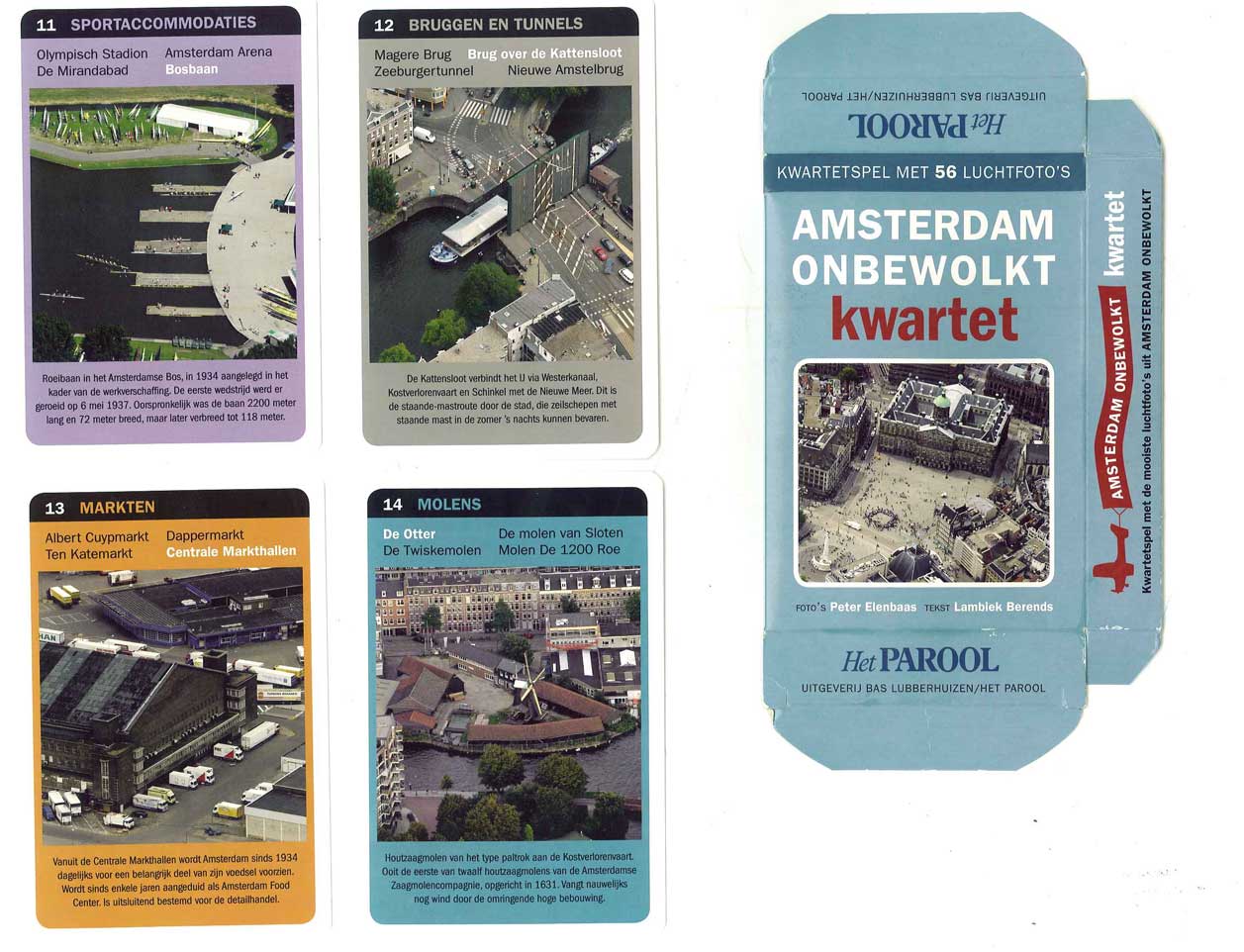 Spel van 56 speelkaarten met luchtfoto's van Amsterdam, in doosje.- Trefwoorden