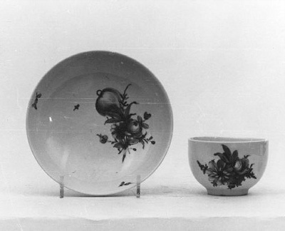 - Kopje en schotel van 18-delig koffie- en theeservies, 1780 - 1799
