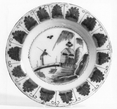 midden: visser op een brug; rand: staande bladrand- Trefwoorden