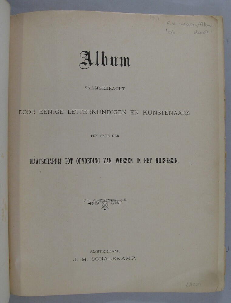 - Album saamgebracht door eenige letterkundigen en kunstenaars ten bate der Maatschappij tot opvoeding van weezen in het huisgezin