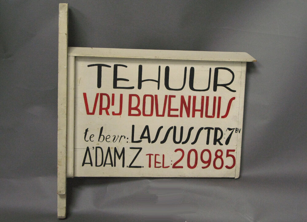 - Uithangbord TE HUUR/ VRIJ BOVENHUIS, 1920 - 1940