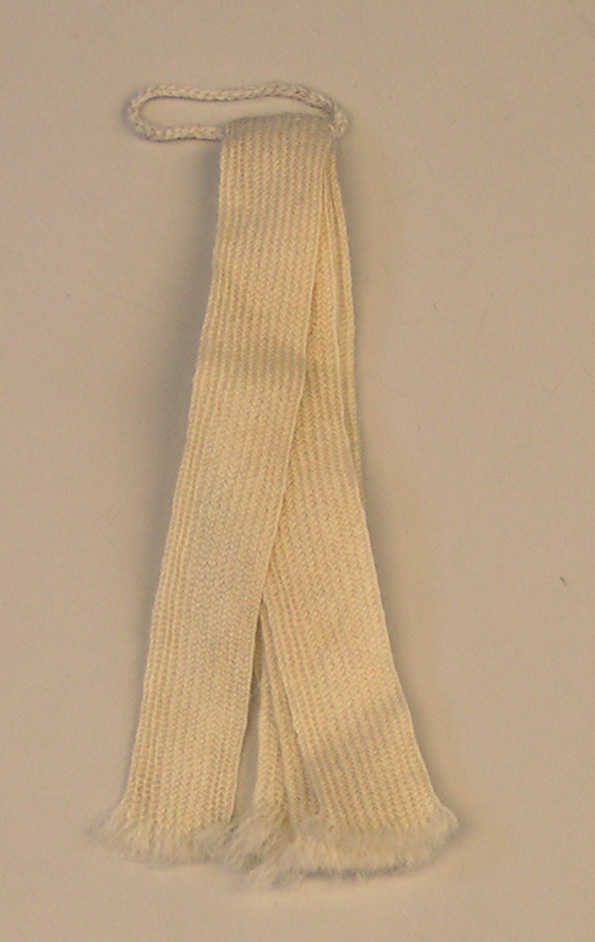 drie witte gevlochten linten die om een gevlochten koordje zijn geslagen.- Trefwoorden