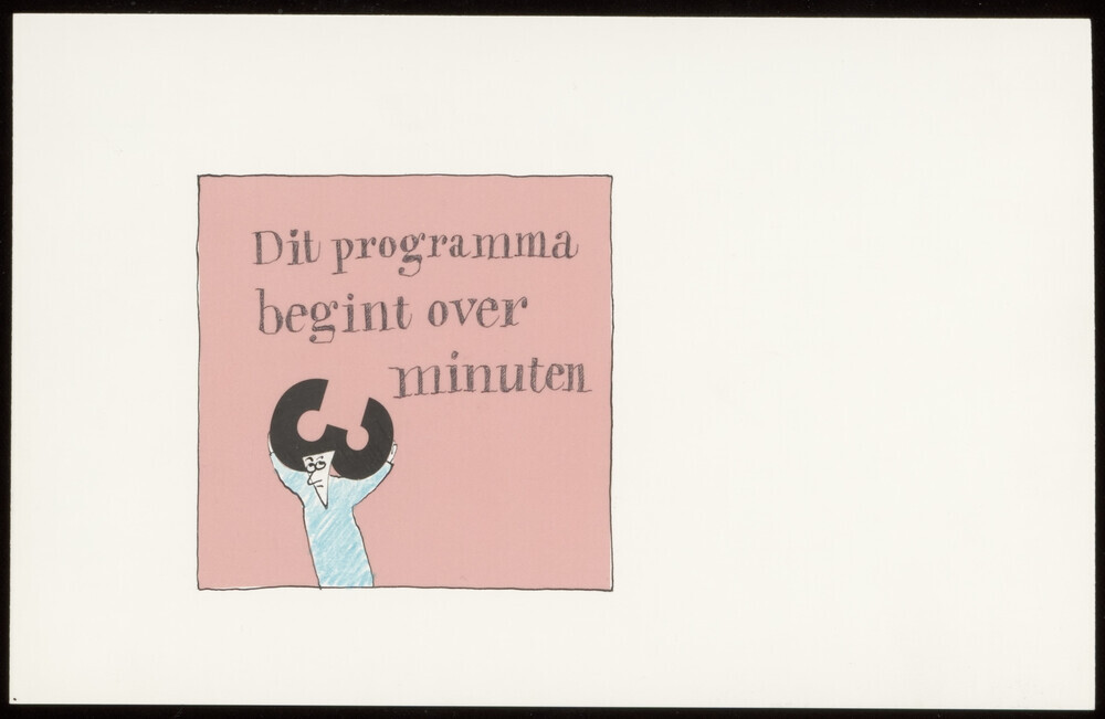 - opschrift voorzijde: Dit programma begint over 3 minuut