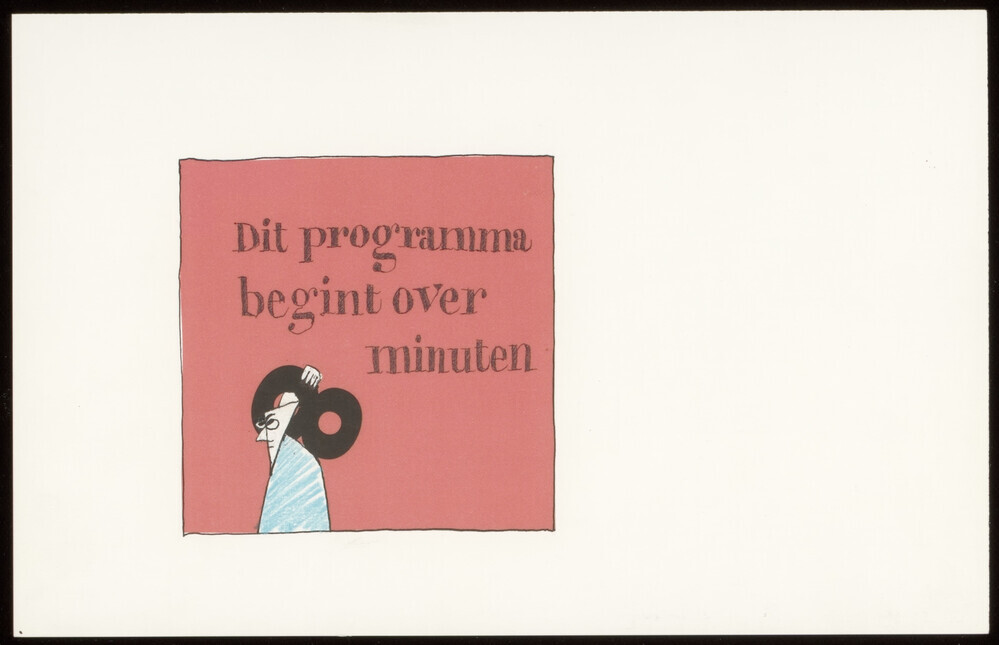 - opschrift voorzijde: Dit programma begint over 8 minuten