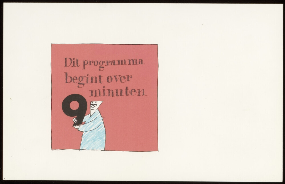 - opschrift voorzijde: Dit programma begint over 9 minuten