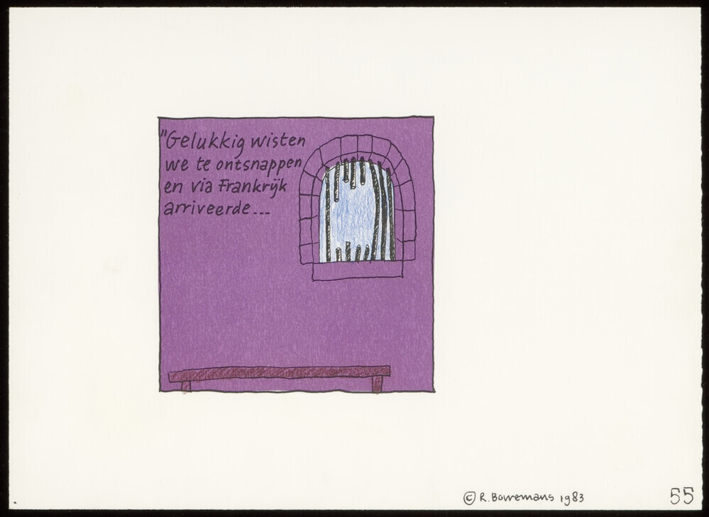 opschrift voorzijde: "Gelukkig wisten // we te ontsnappen // en via Frankrijk // arriveerde...