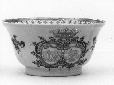 - monogram op kom: WHHW WWC: 2 gekroonde médaillons met ineengestrengelde handen en monogrammen WHHW en WWC