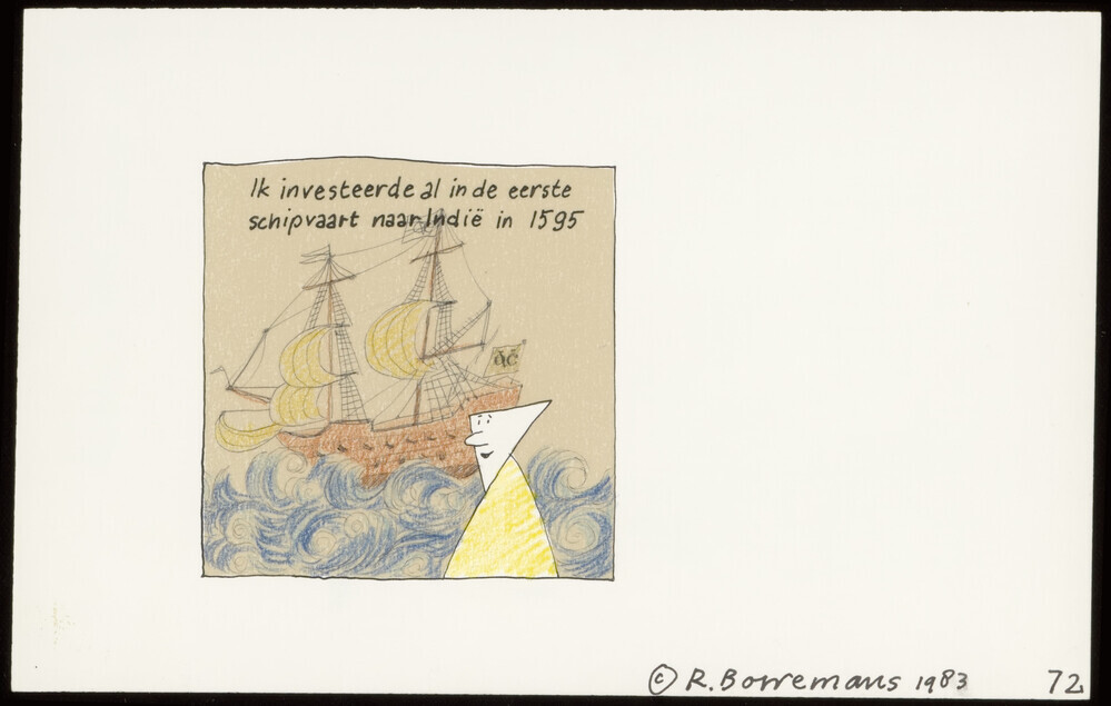 - opschrift voorzijde: Ik investeerde al in de eerste // schipvaart naar Indië in 1595