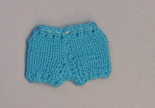 Kort broekje gebreid van blauwe wol.- Trefwoorden