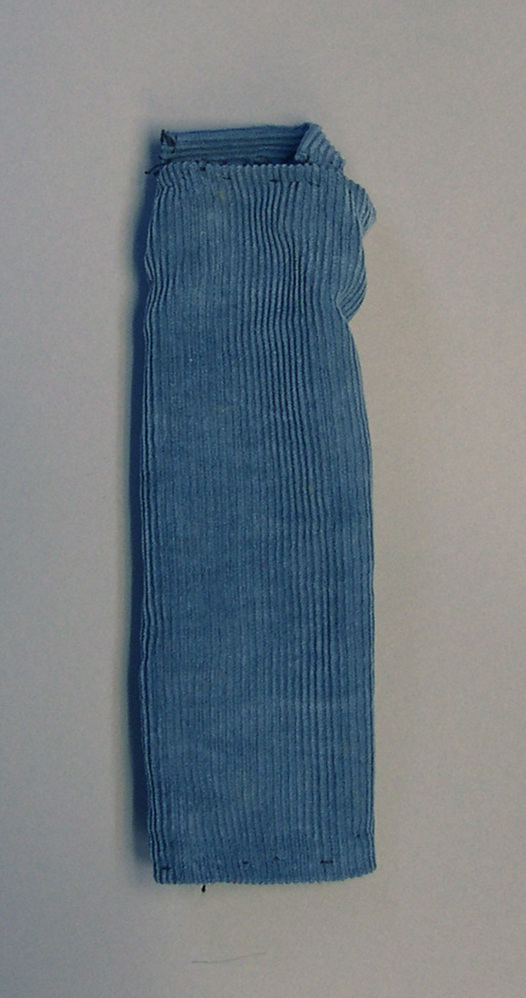 Jurk van blauwe ribcord, met rechte hals.- Trefwoorden