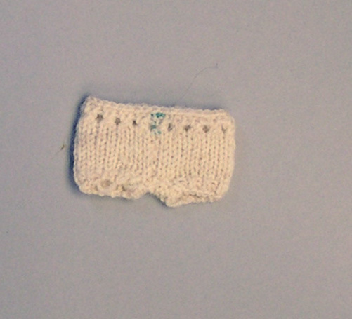 Kort broekje gebreid van witte wol.- Trefwoorden