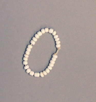 Ketting bestaande uit grote witte kralen.- Trefwoorden