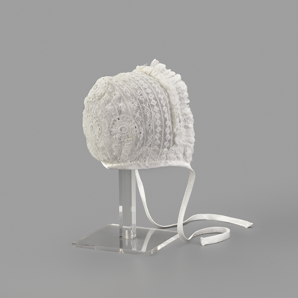 Vermaakte doopmuts, van ouder kant, nieuw aangezette banden.
