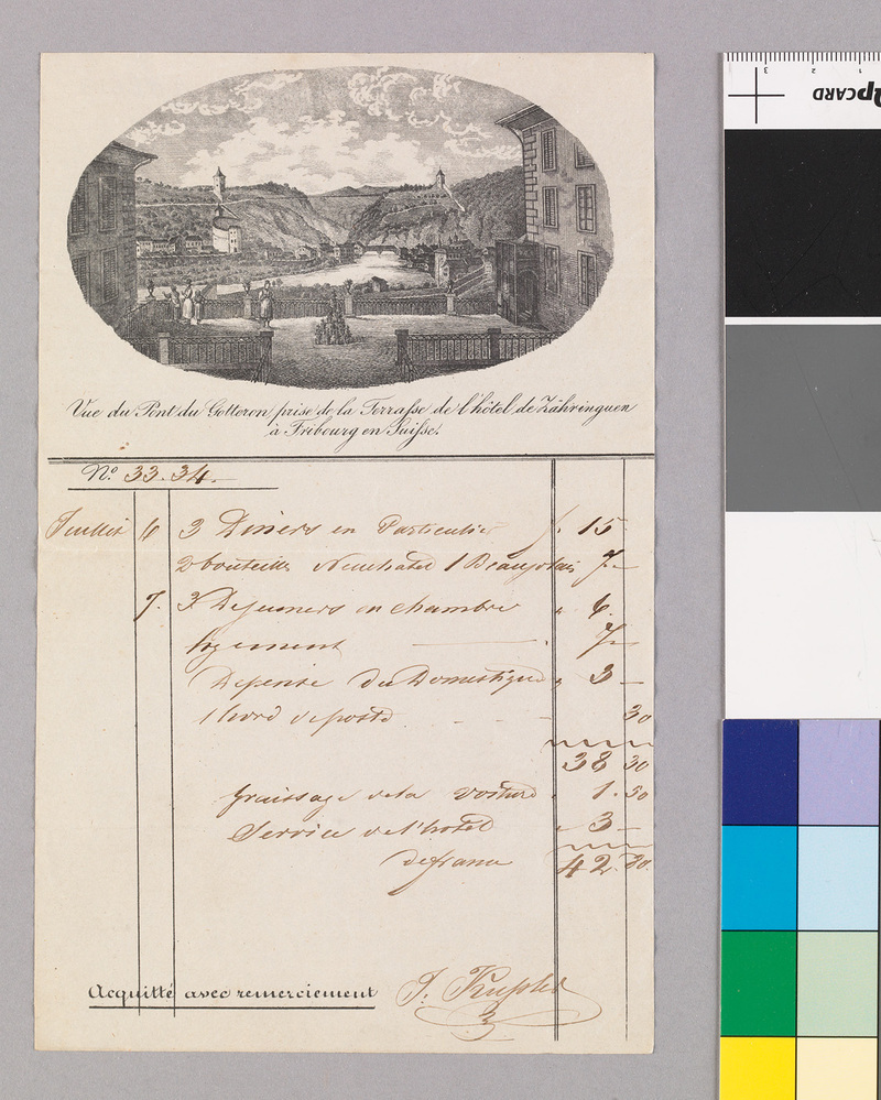 - Rekening van l'Hôtel de Zähringuen te Fribourg, Zwitserland, 1800 - 1899