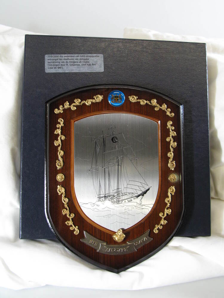 - Plaquette Akogare, ter gelegenheid van bezoek bemanning Akogare uit Osaka bij Sail 2000, 2000