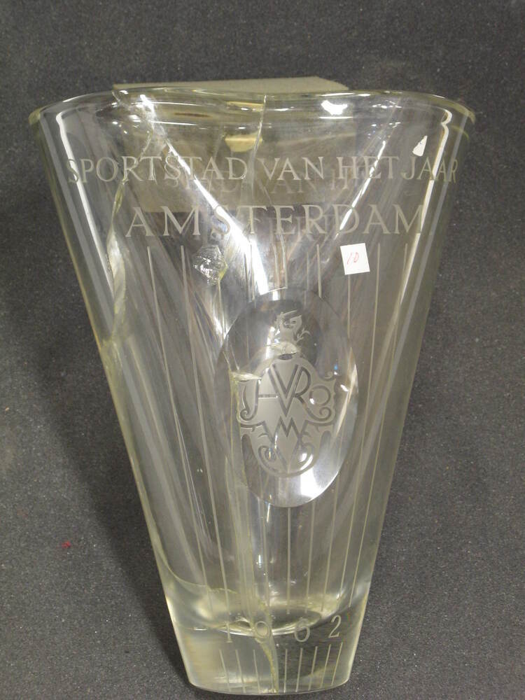Glazen vaas met gravure, gebarsten- Trefwoorden