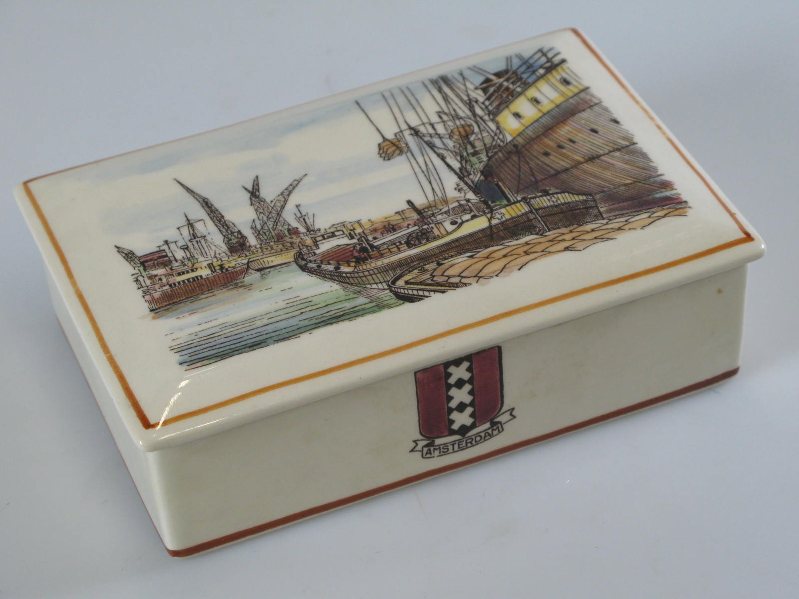 Keramieken sigarettendoos met havenafbeelding voorop- Trefwoorden