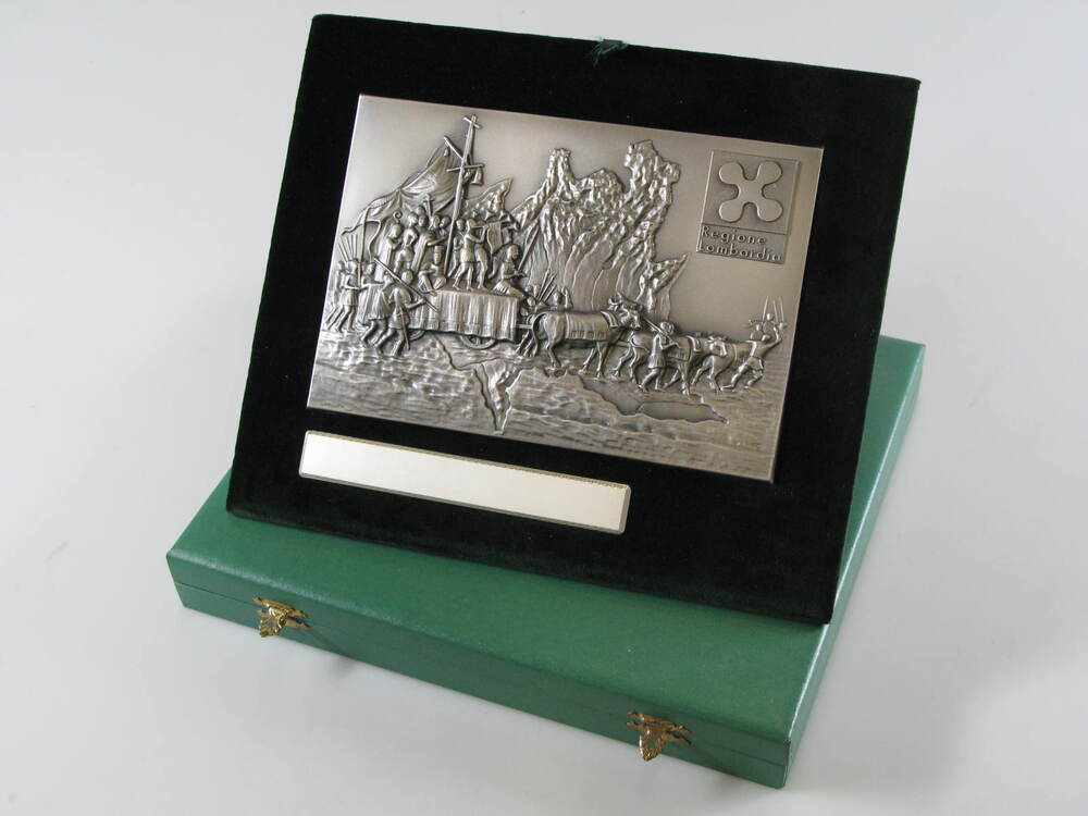 - Plaquette van een stoet met kruisvaarders 'Regione Lombardia' in doos, 1900 - 1999