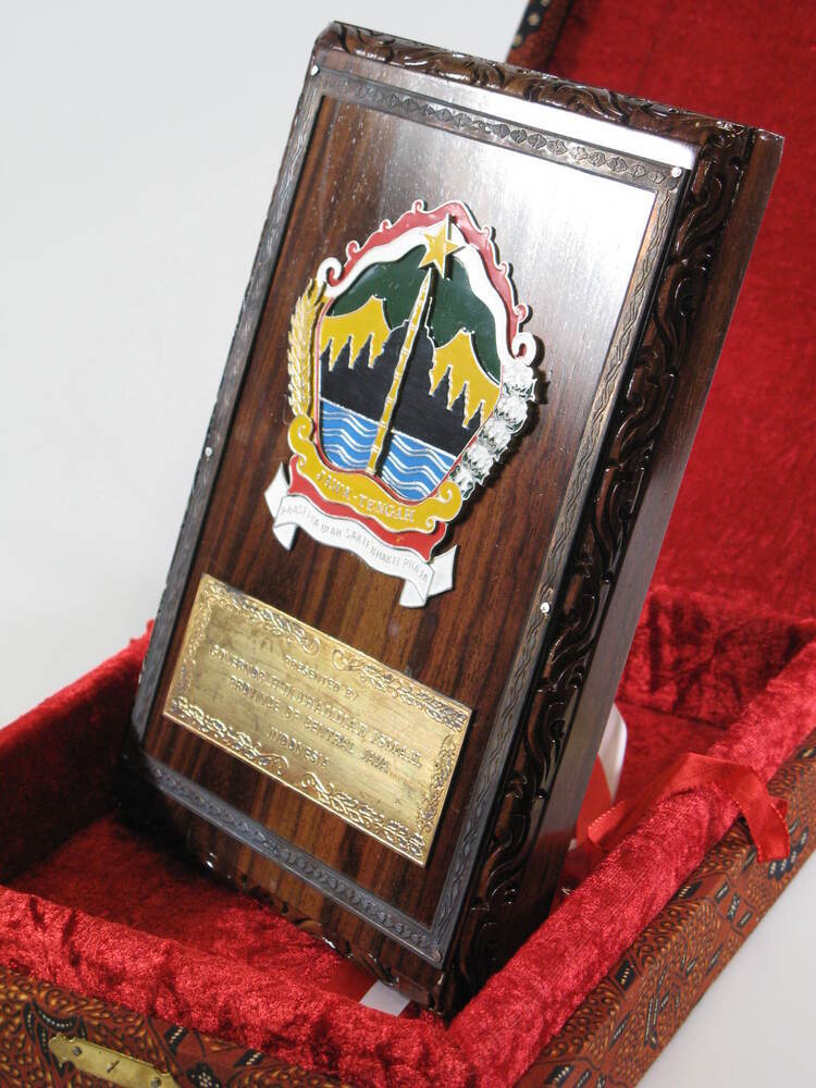 - Plaquette uit Java, geschonken door gouverneur H. Muhammad Ismail aan burgemeester Ed. van Thijn, 1987