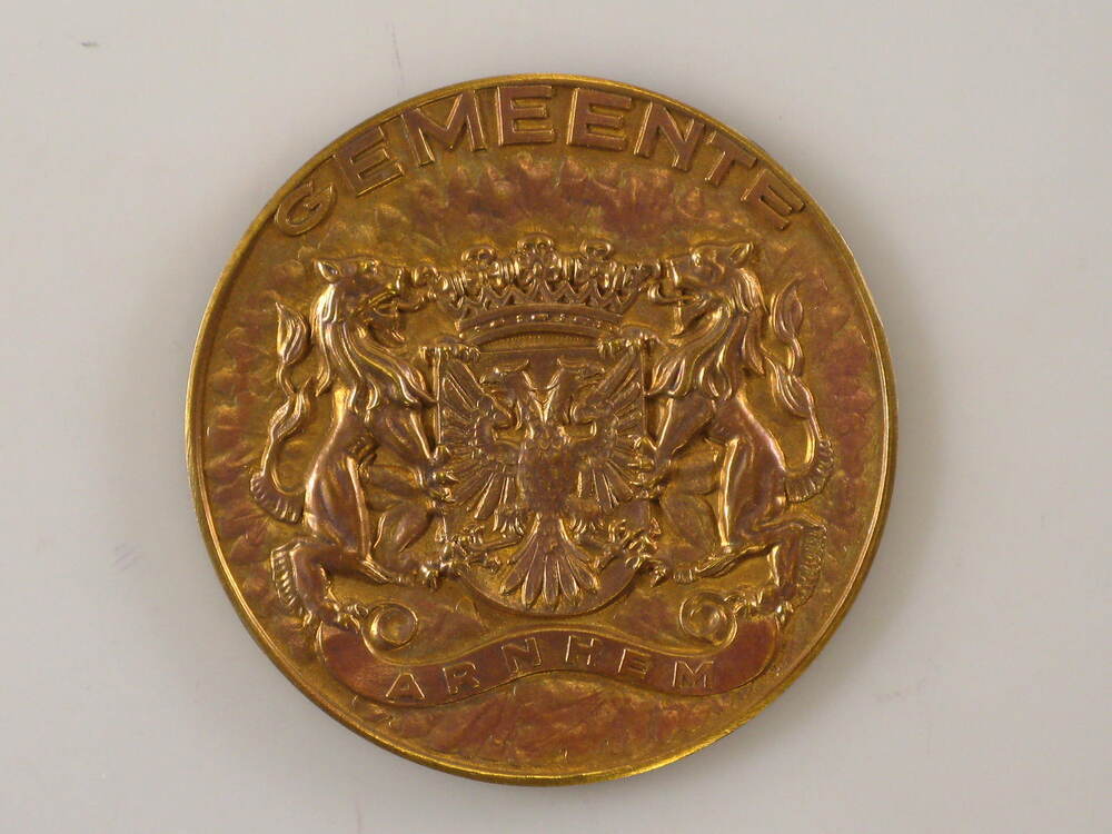 - Penning geschonken aan gemeentebestuur Amsterdam door gemeente Arnhem, 1945
