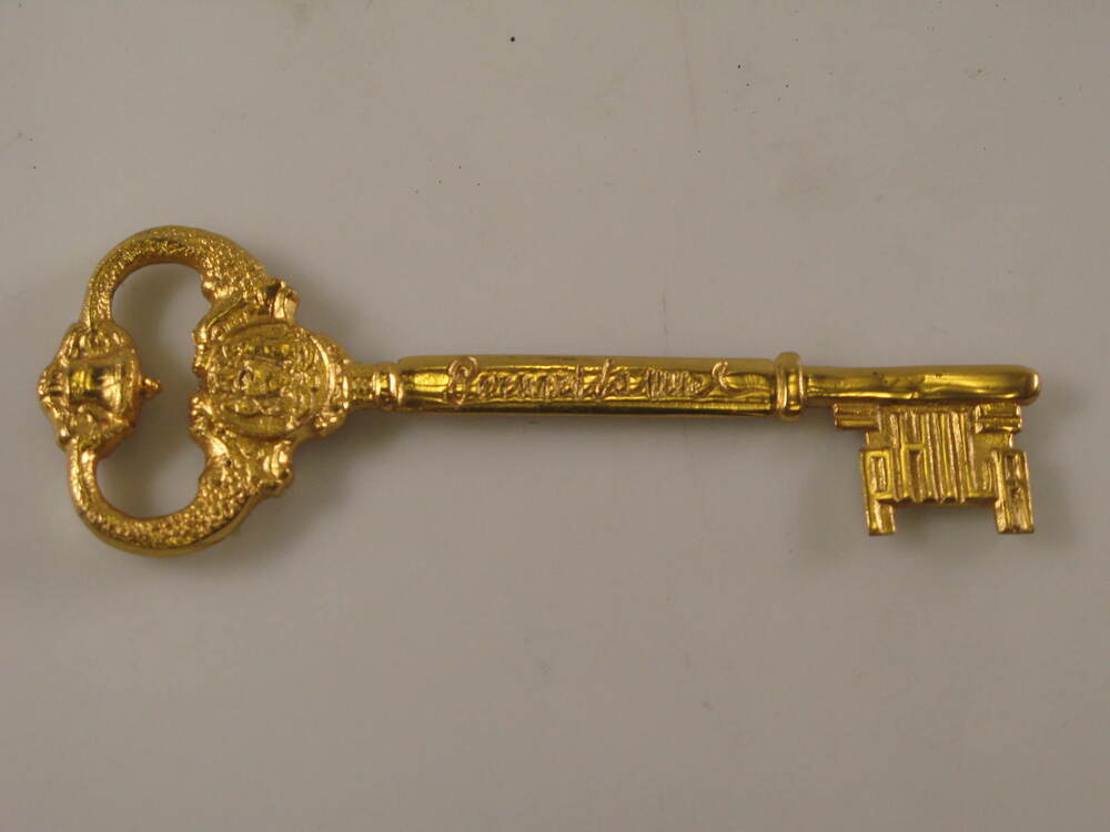 Bronzen sleutel (1) in etui (2).- Trefwoorden