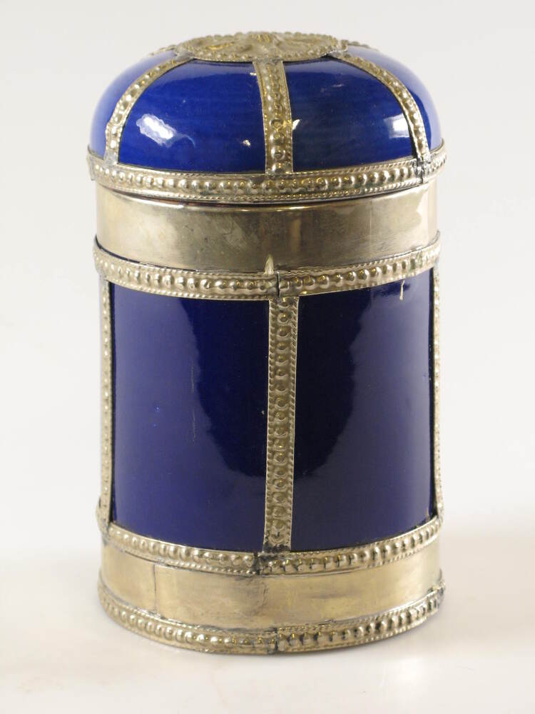 - Blauwe aardewerk pot met metalen decoratie, 2000
