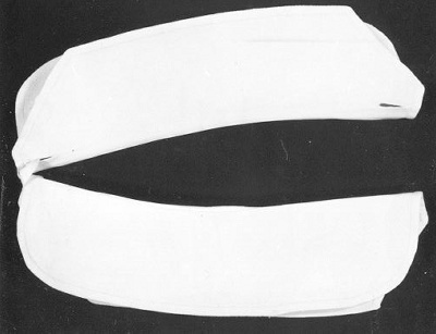 Paar wit gesteven dubbele manchetten, mogelijk voor dienstbode.- Trefwoorden