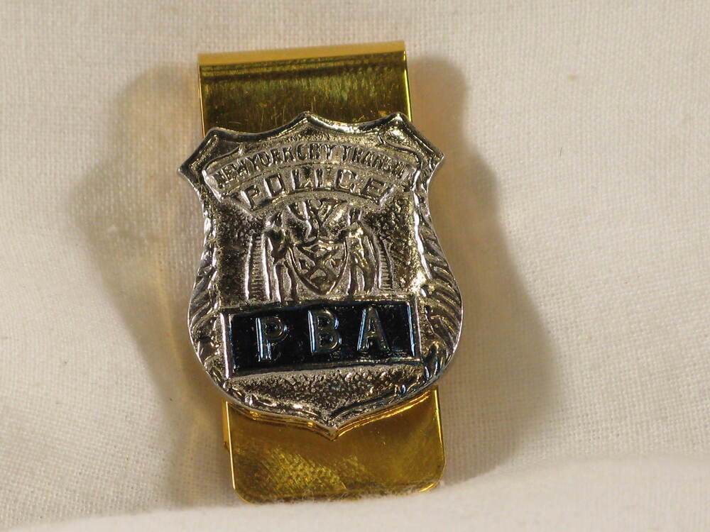 Metalen klip met wapenschild en letters PBA.- Trefwoorden