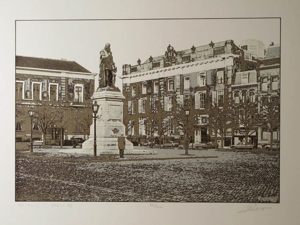 - Zeefdruk 'Den Haag Plein 23', geschonken door de Secretarissen-Generaal ter herinnering aan hun bezoek aan Amsterdam in 1988, 1988