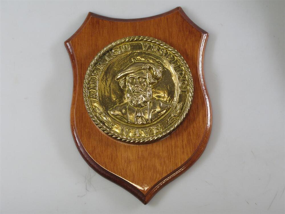 - Plaquette Amerigo Vespucci, Nave, met voorstelling van manskop, 1900 - 1999
